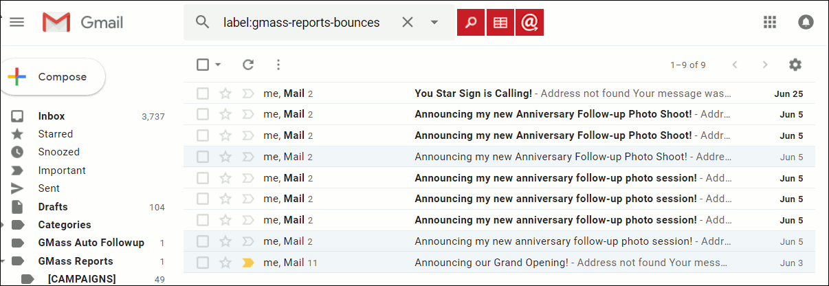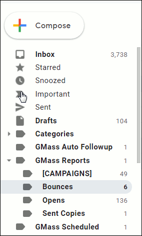 With GMass, it is useful to occasionally check your bounced emails Label to see which emails that you sent through a GMass campaign did not actually make it to their intended recipients–that is, they “bounced”.