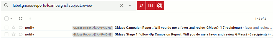 And the result would bring up any campaign with the word “review” in the Subject line: