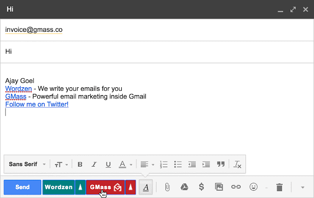 Important: Be sure to hit the red GMass button, and not the regular Gmail Send button. Hitting the regular Send button will result in a bounce.