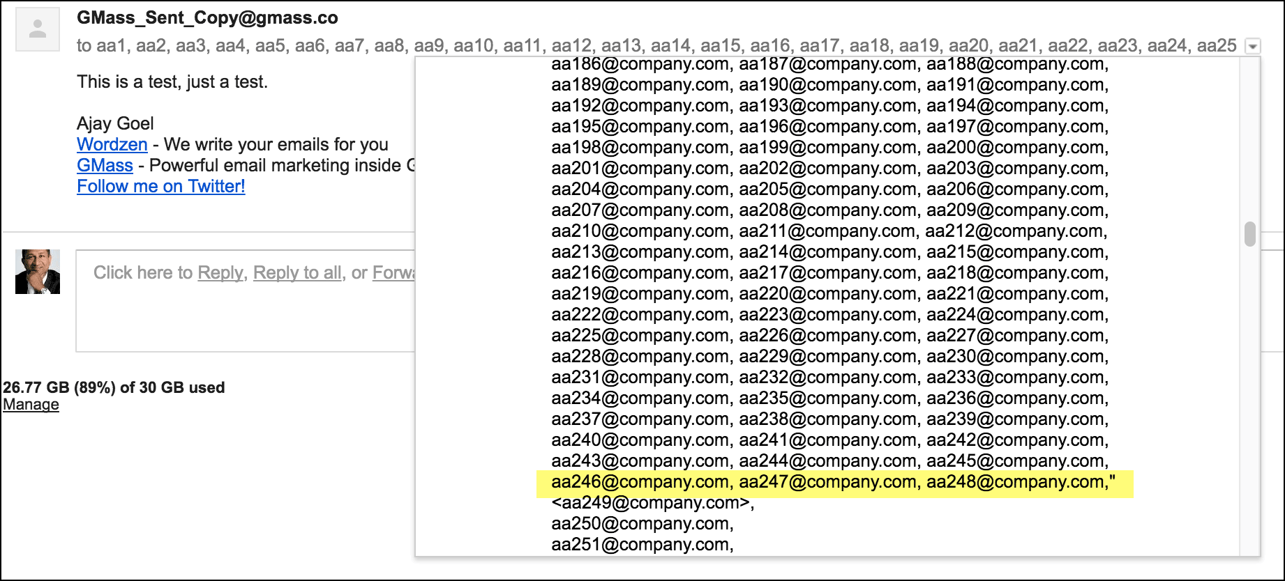 If you’ve sent a mass email with GMass by copying and pasting addresses into the To field, and fewer emails were sent than you expected, then the reason is likely that your list of email addresses was tainted with extraneous characters.