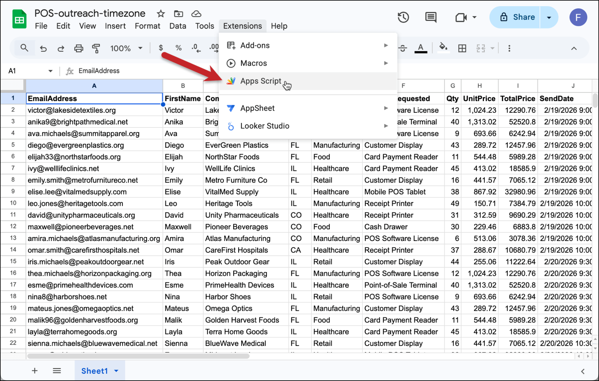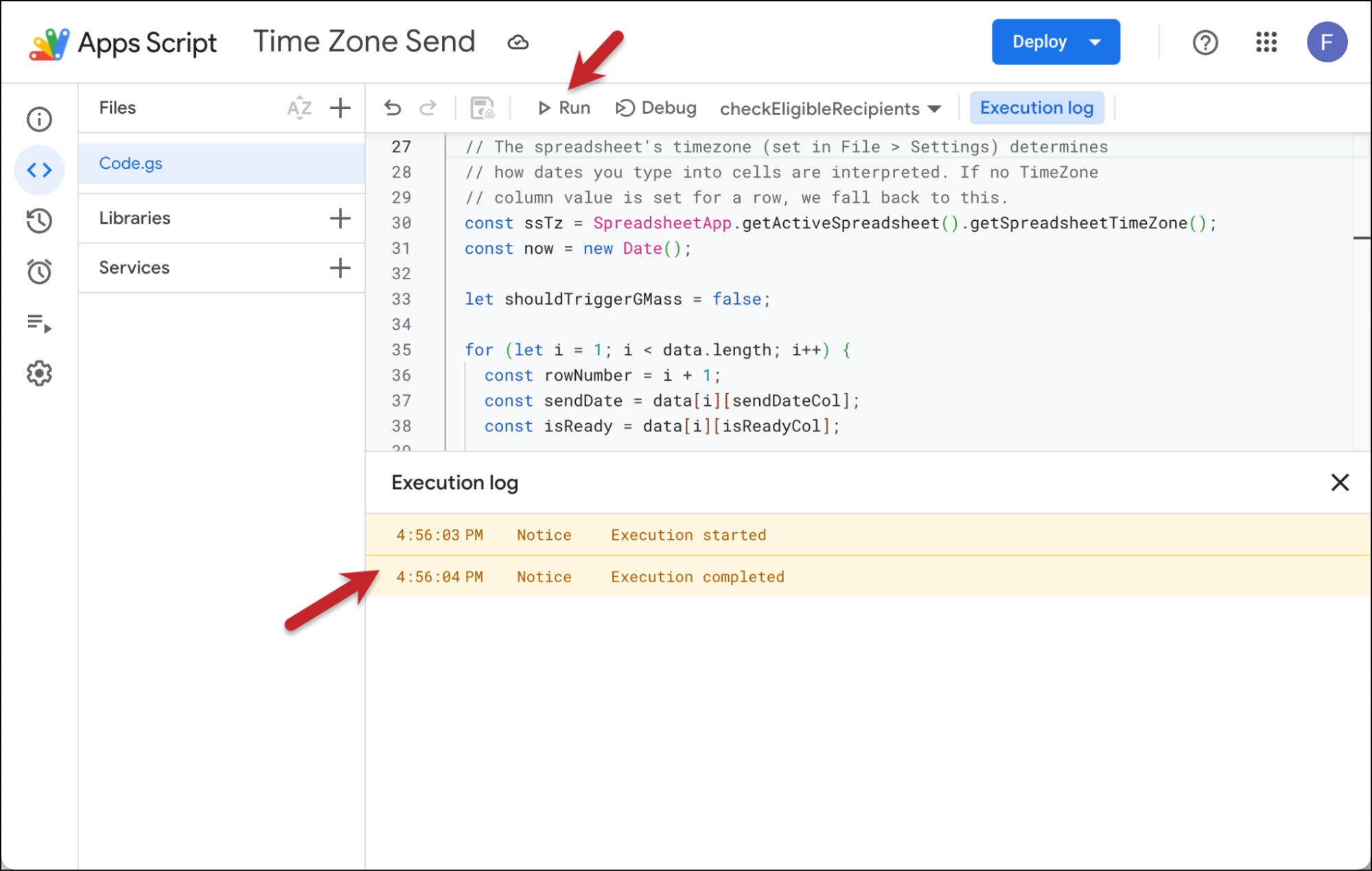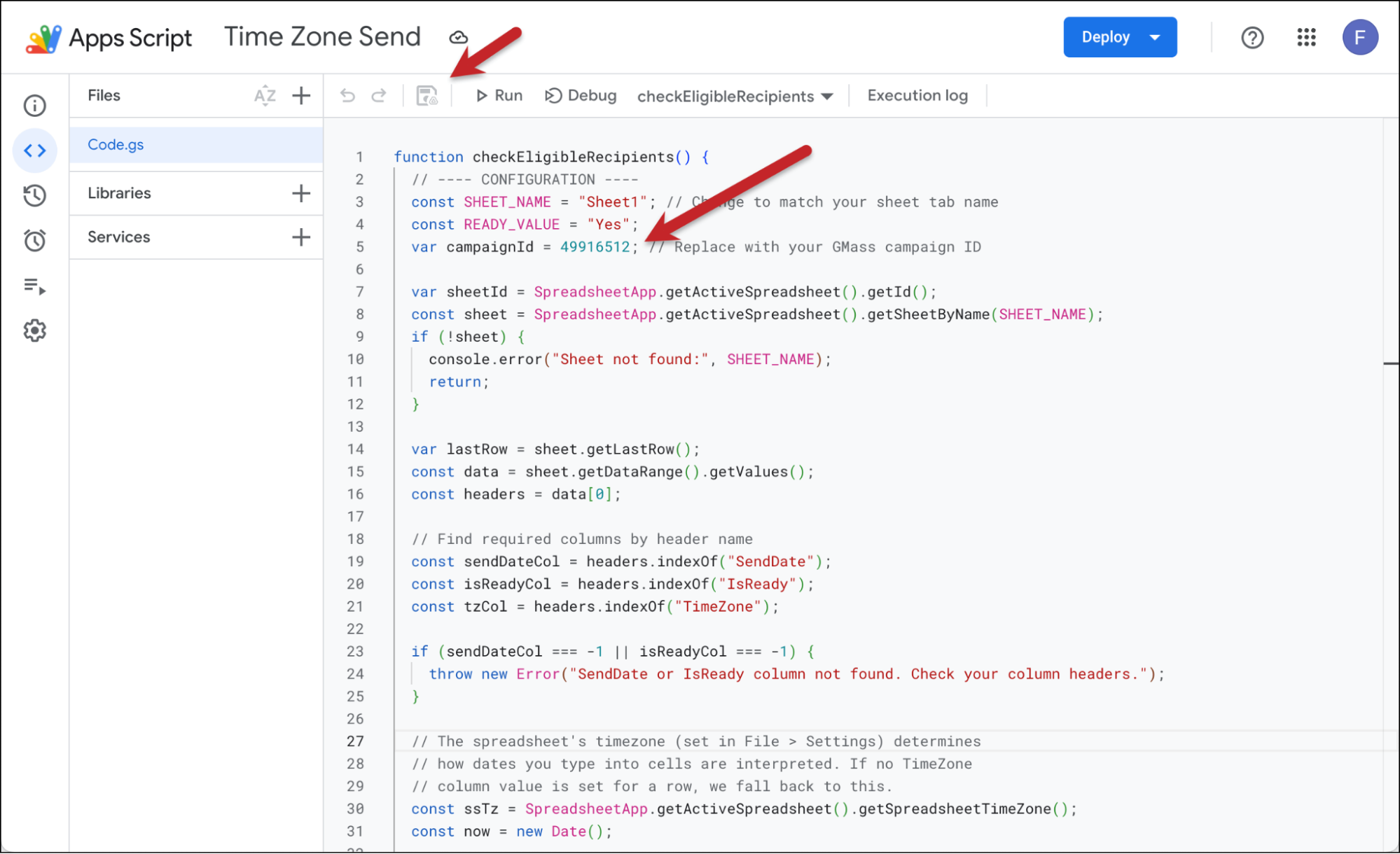 If a person’s send date/time is now or has passed in their time zone, the script updates the IsReady column for that person to Yes. And GMass sees that Yes and sends out that recipient’s email.