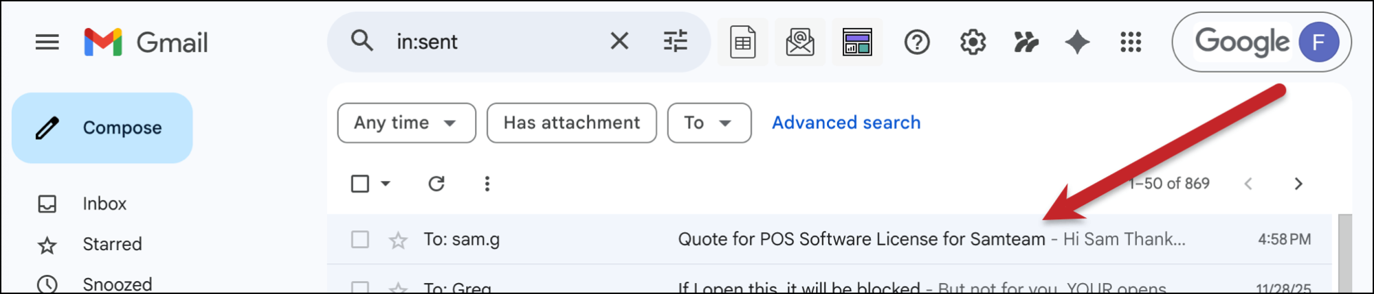 Click the sheet icon next to the Gmail search bar to connect to your Google Sheet and select it from the dropdown.