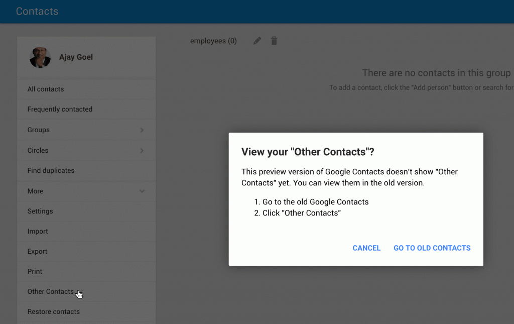 - Alternatively, you can launch Google Contacts in a separate window by going to https://www.google.com/contacts in a separate browser window. This is the least preferred method.