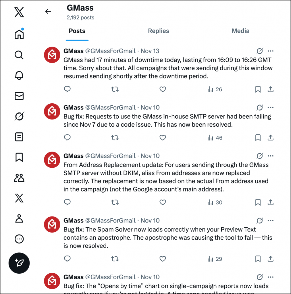 GMass updates on new features, network status, and more.
