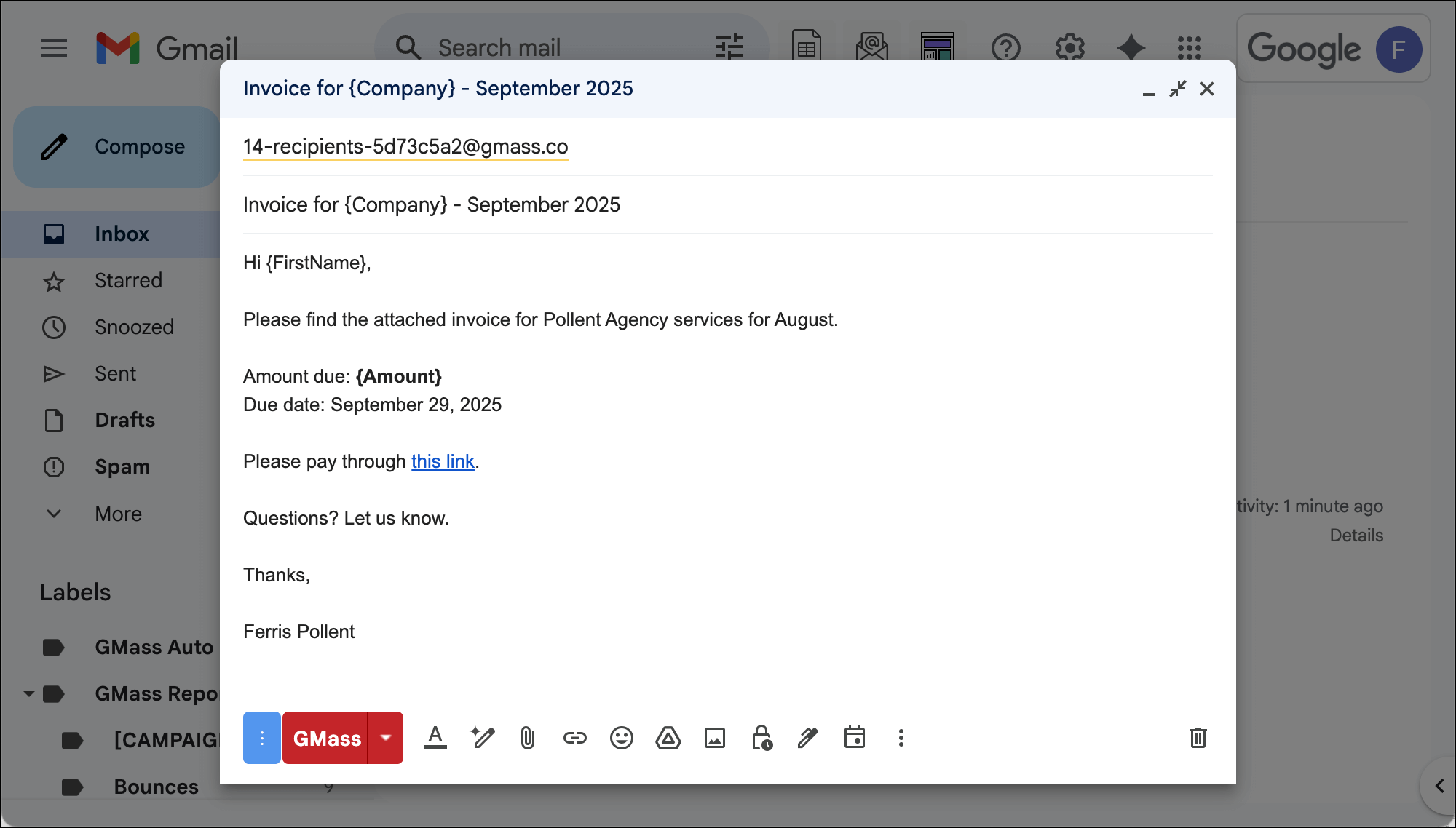 If all looks good in your drafts, click the link in the email from GMass to send them out.