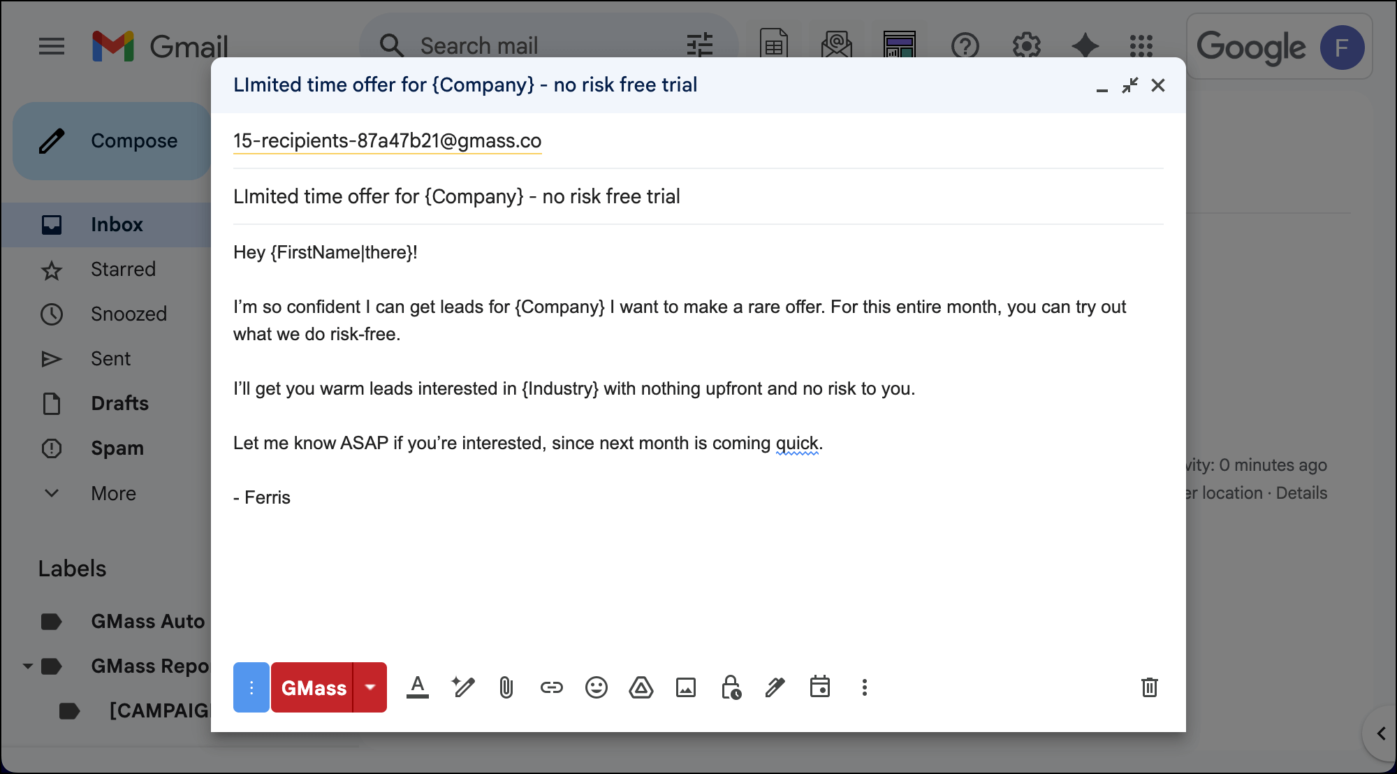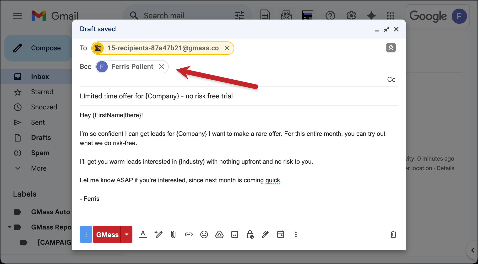 Click the red GMass button to send your campaign. You’ll receive a copy in your inbox of every single email.