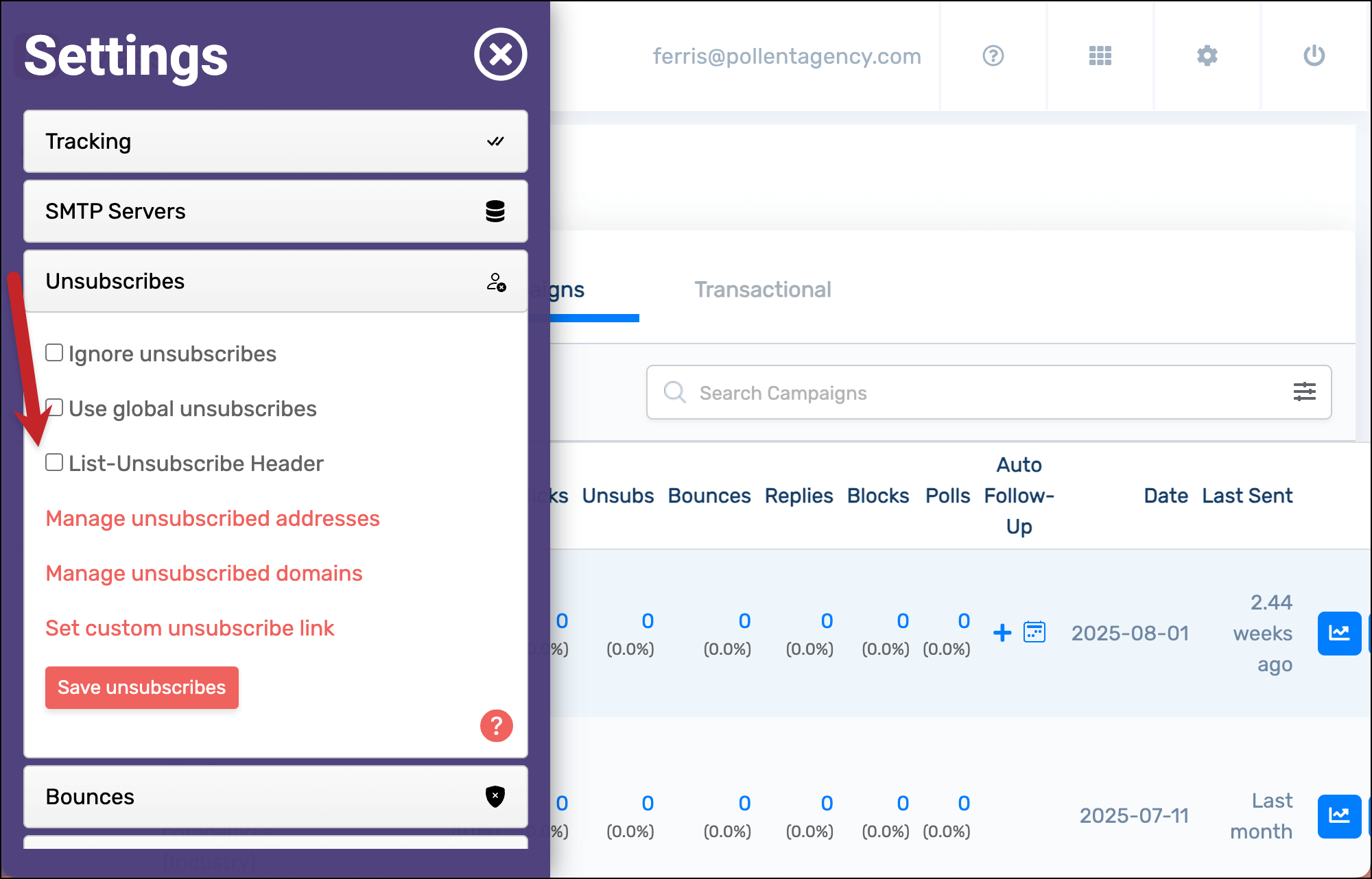 2. Turn off list-unsubscribe header in the GMass dashboard