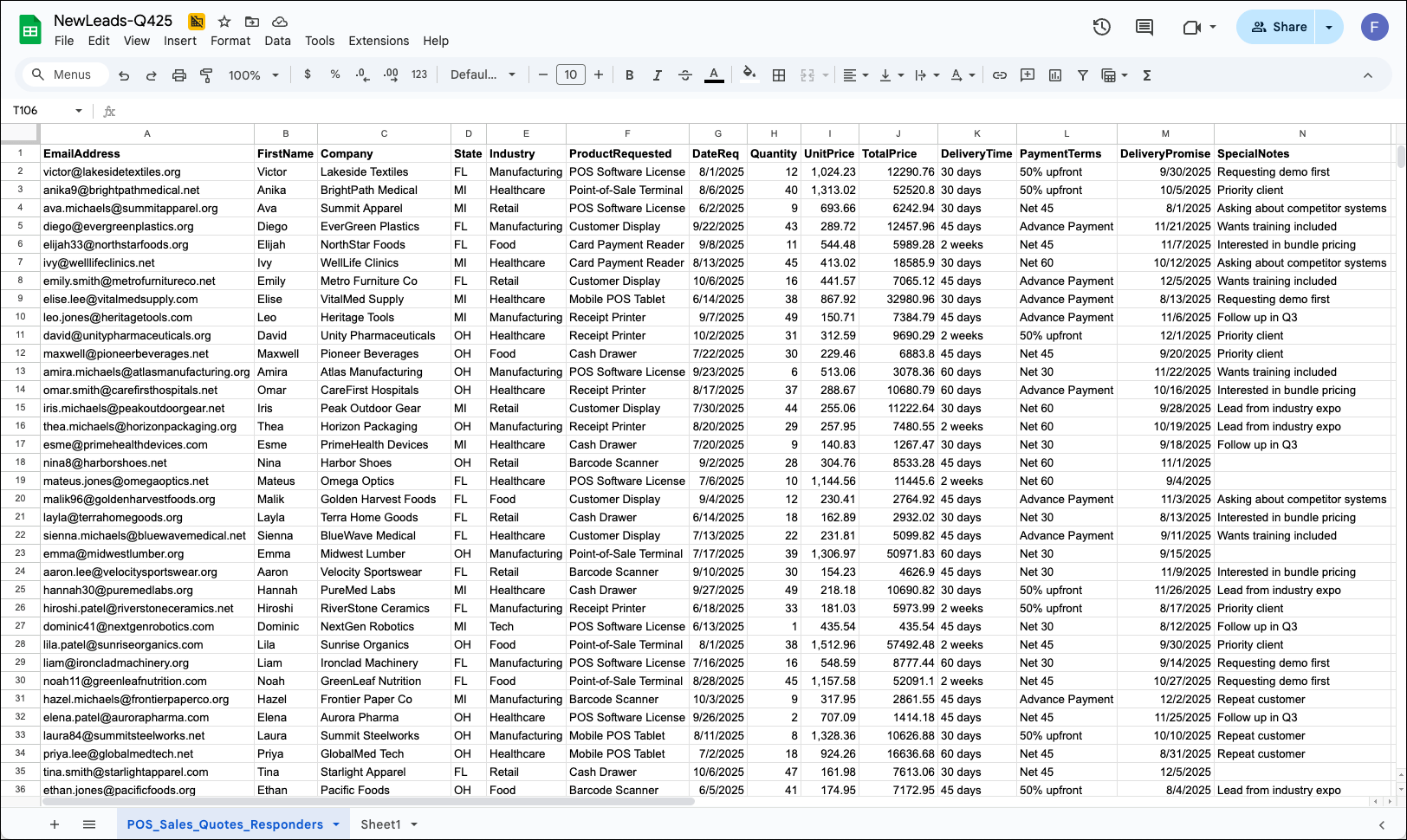 And since I’ll be referencing it a lot in this workflow, here’s a look at my Google Sheet.