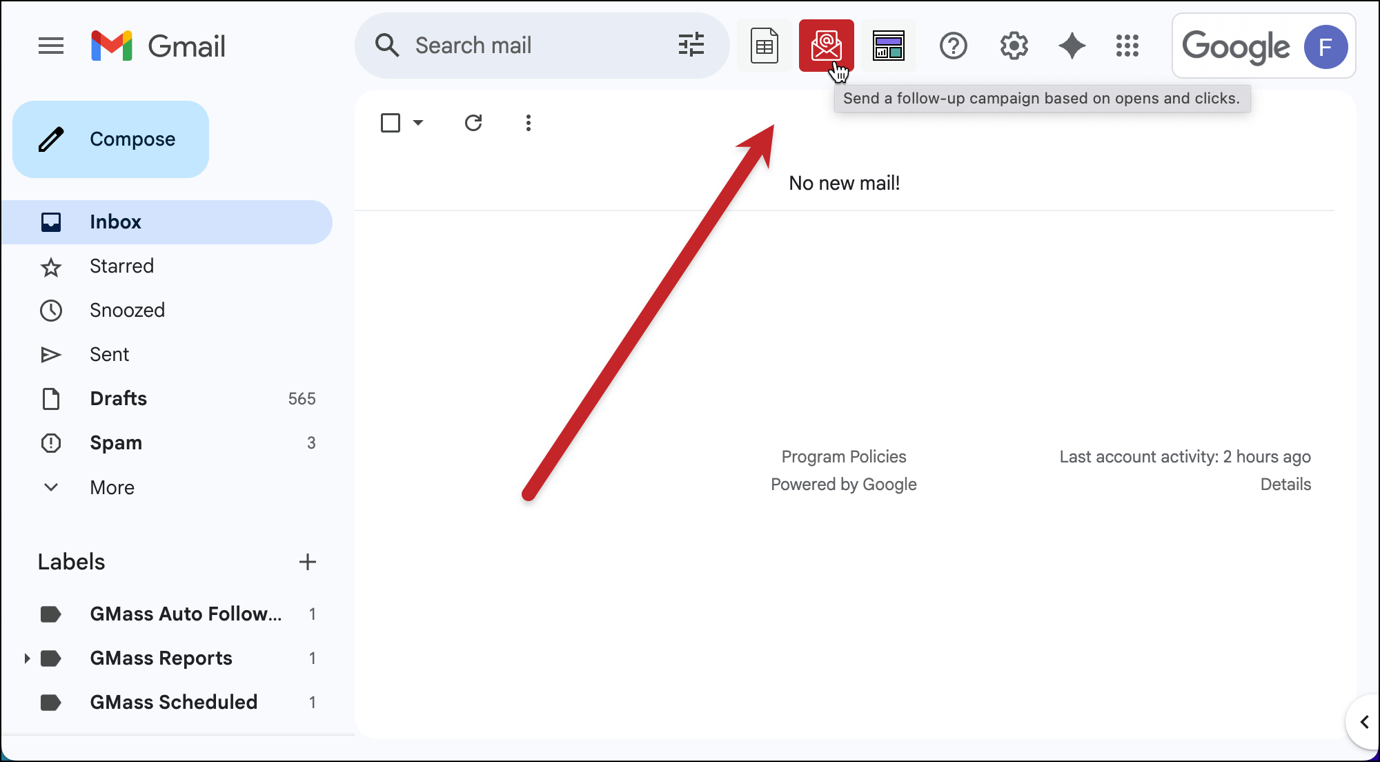 To initiate this behavior-based follow-up campaign, click the envelope icon that GMass adds next to the Gmail search bar.