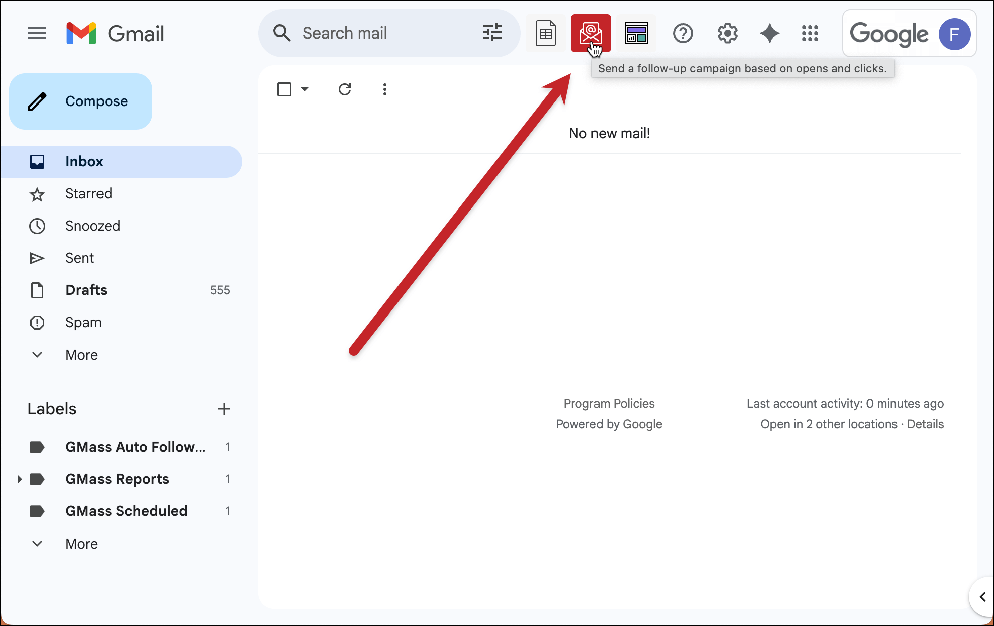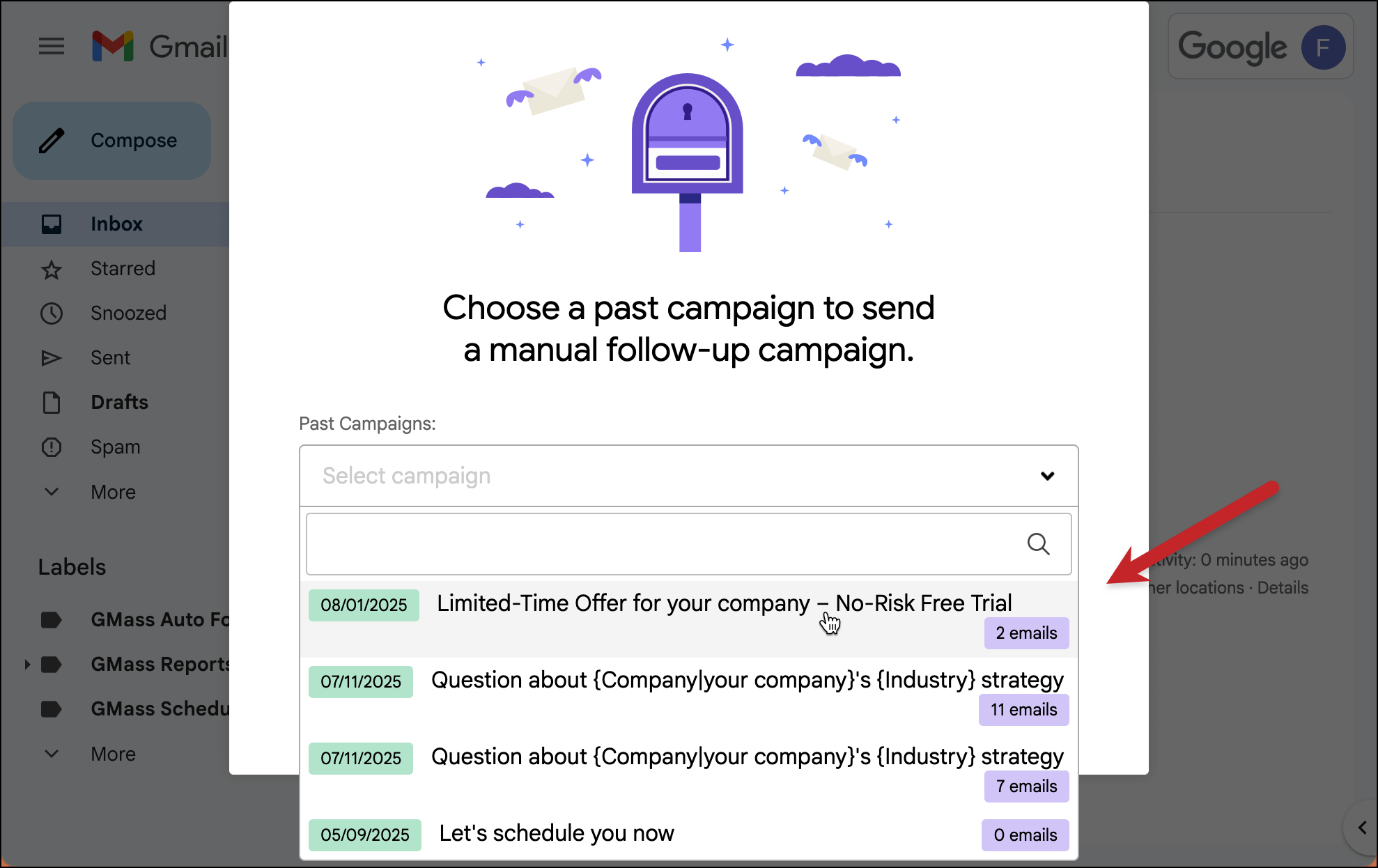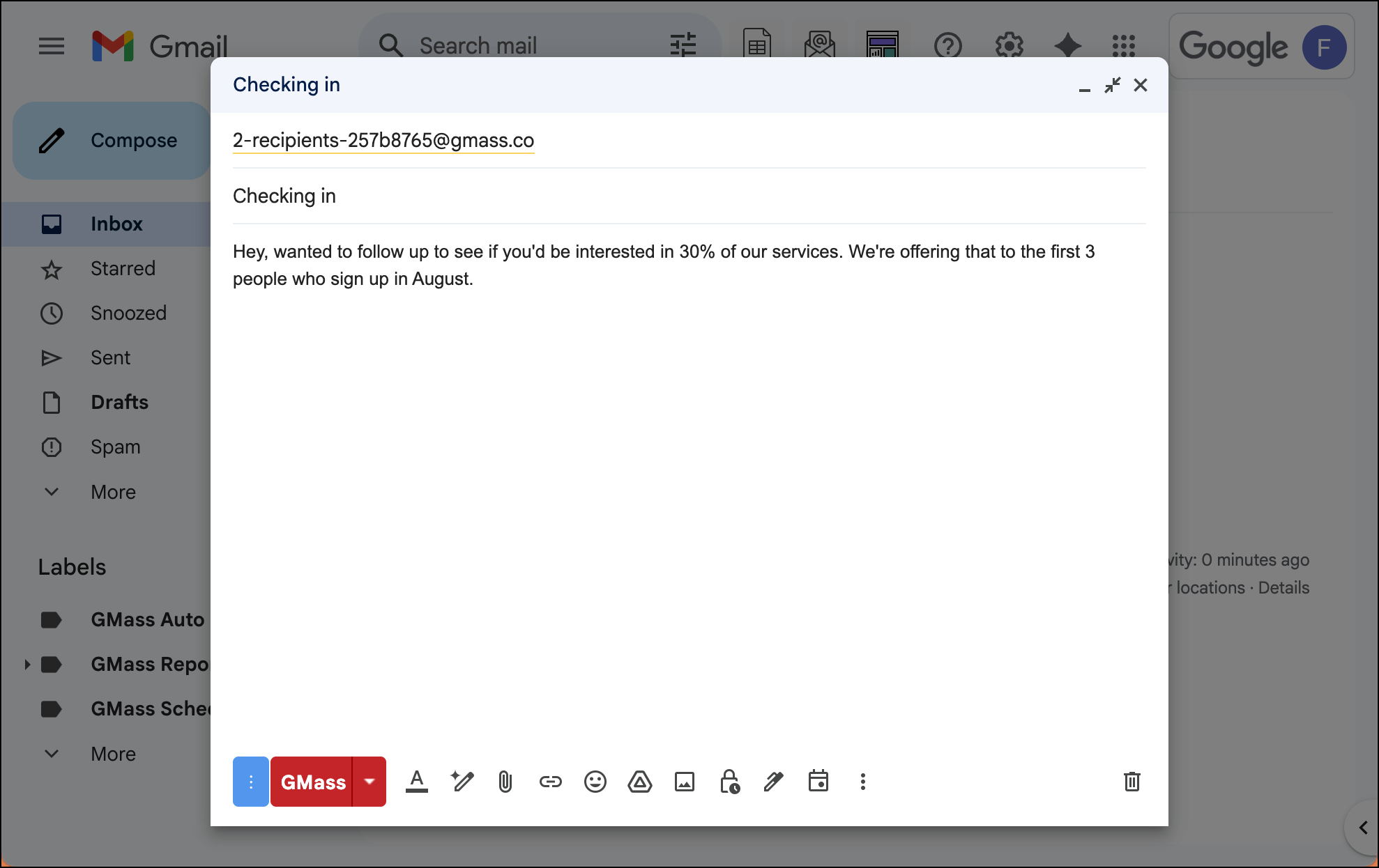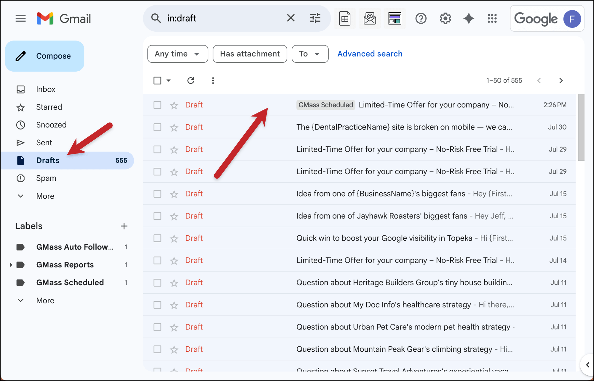 1. Head to Gmail, go to the Drafts folder, and find your campaign draft