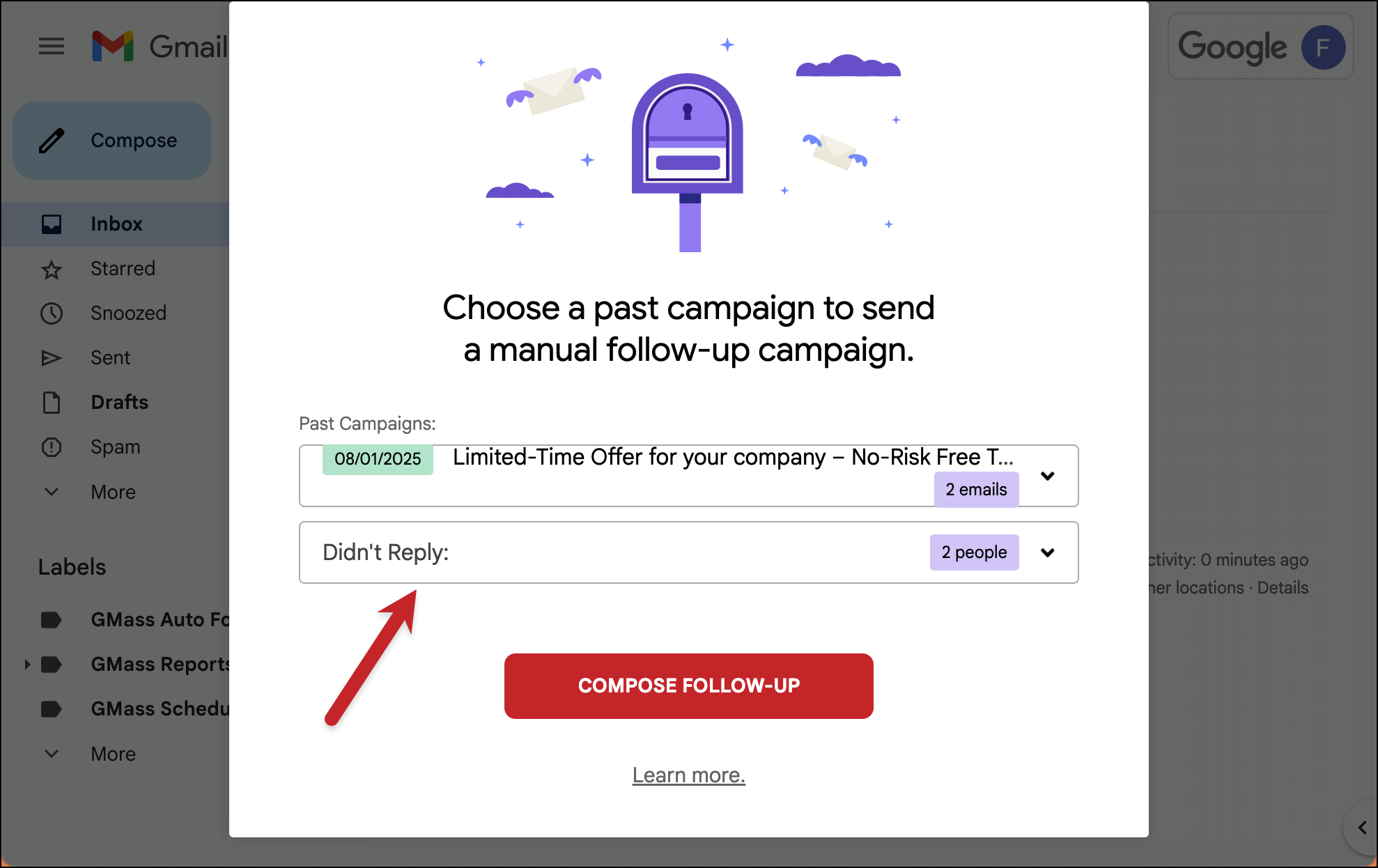The good news? It’s still pretty simple to send follow-ups to everyone from that campaign.