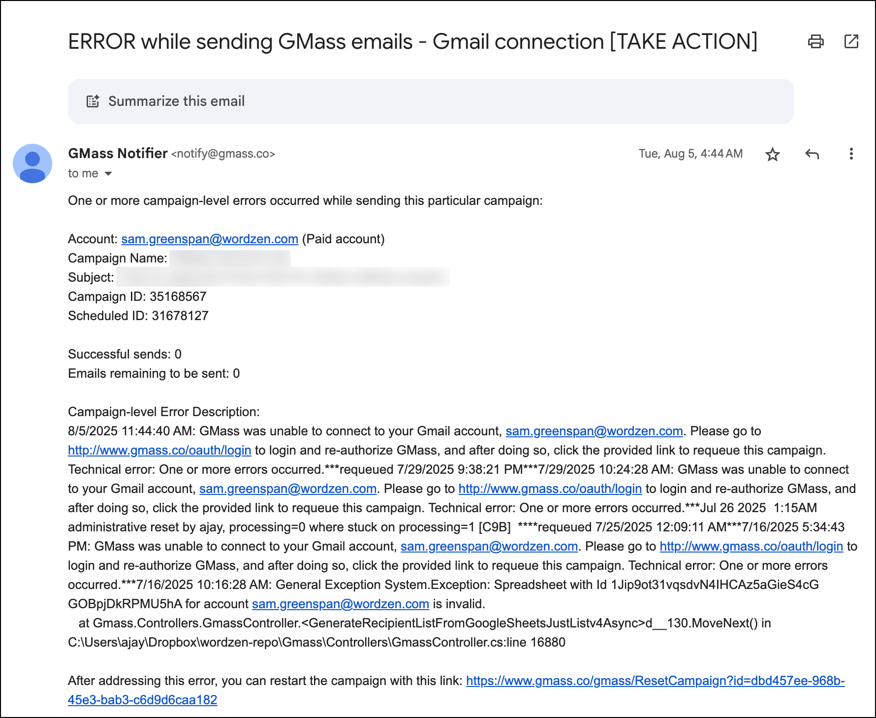 GMass & Infrastructure > Gmail disconnected mid-campaign |