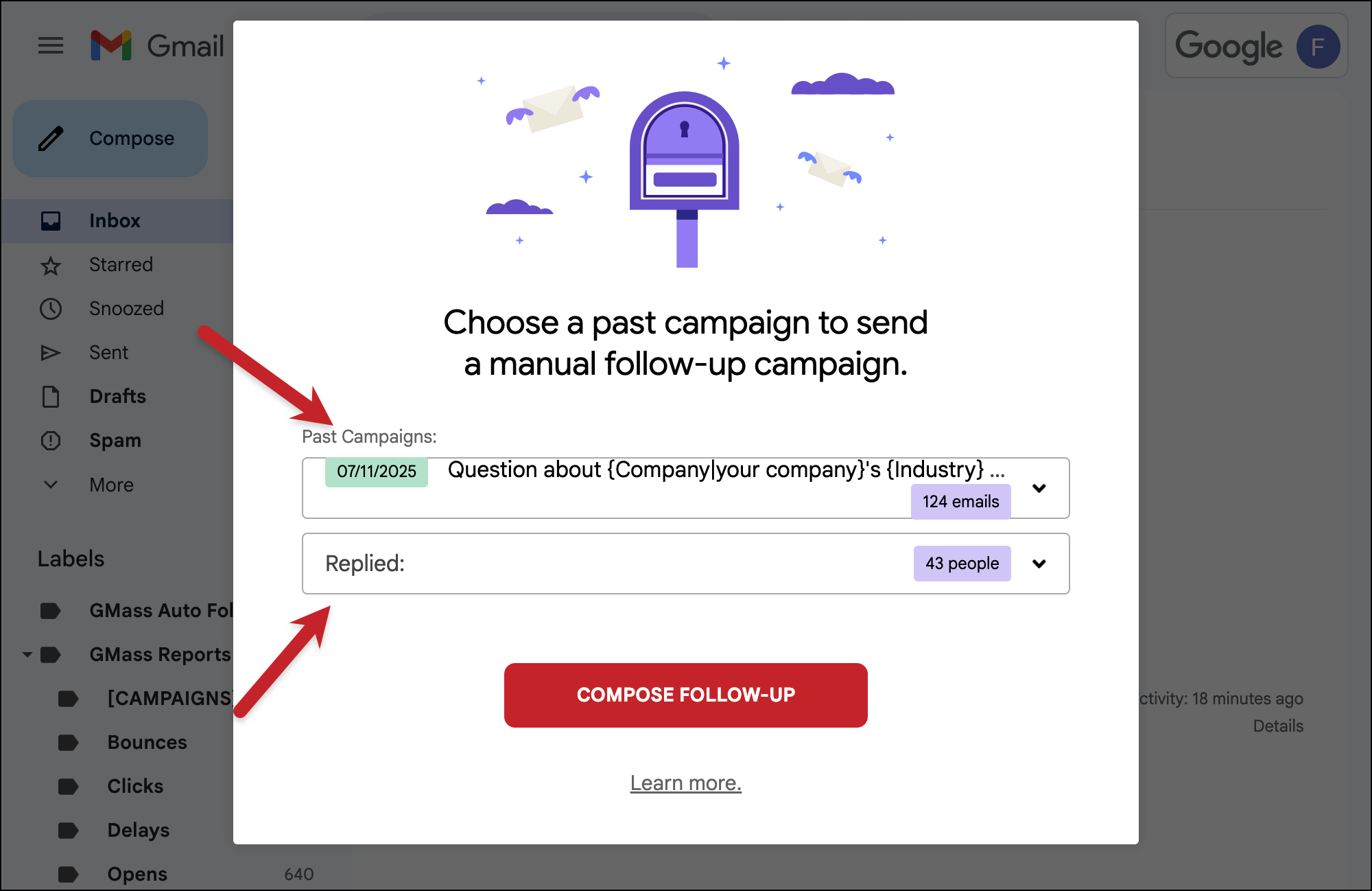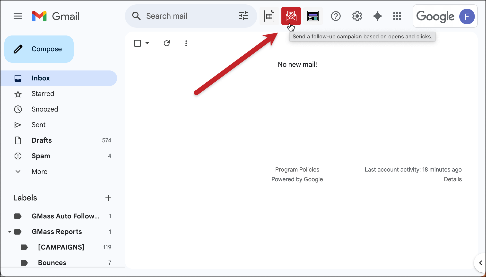 Once your follow-up campaign sequence is all ready to go, you can send it by clicking the red GMass button.