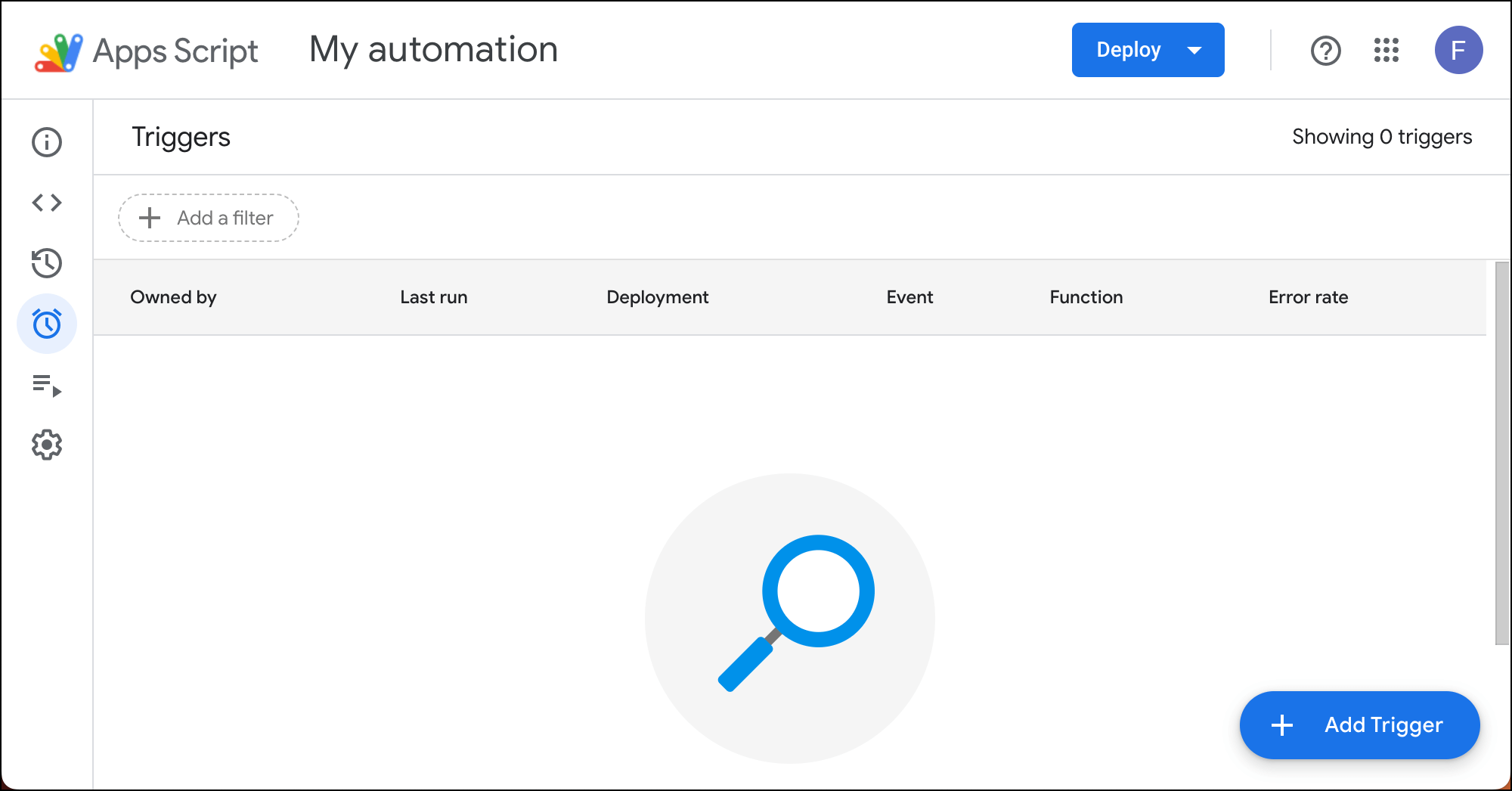 Then click the Triggers menu on the left (it looks like a stopwatch).