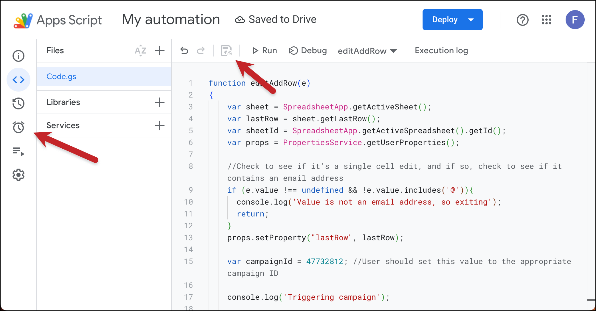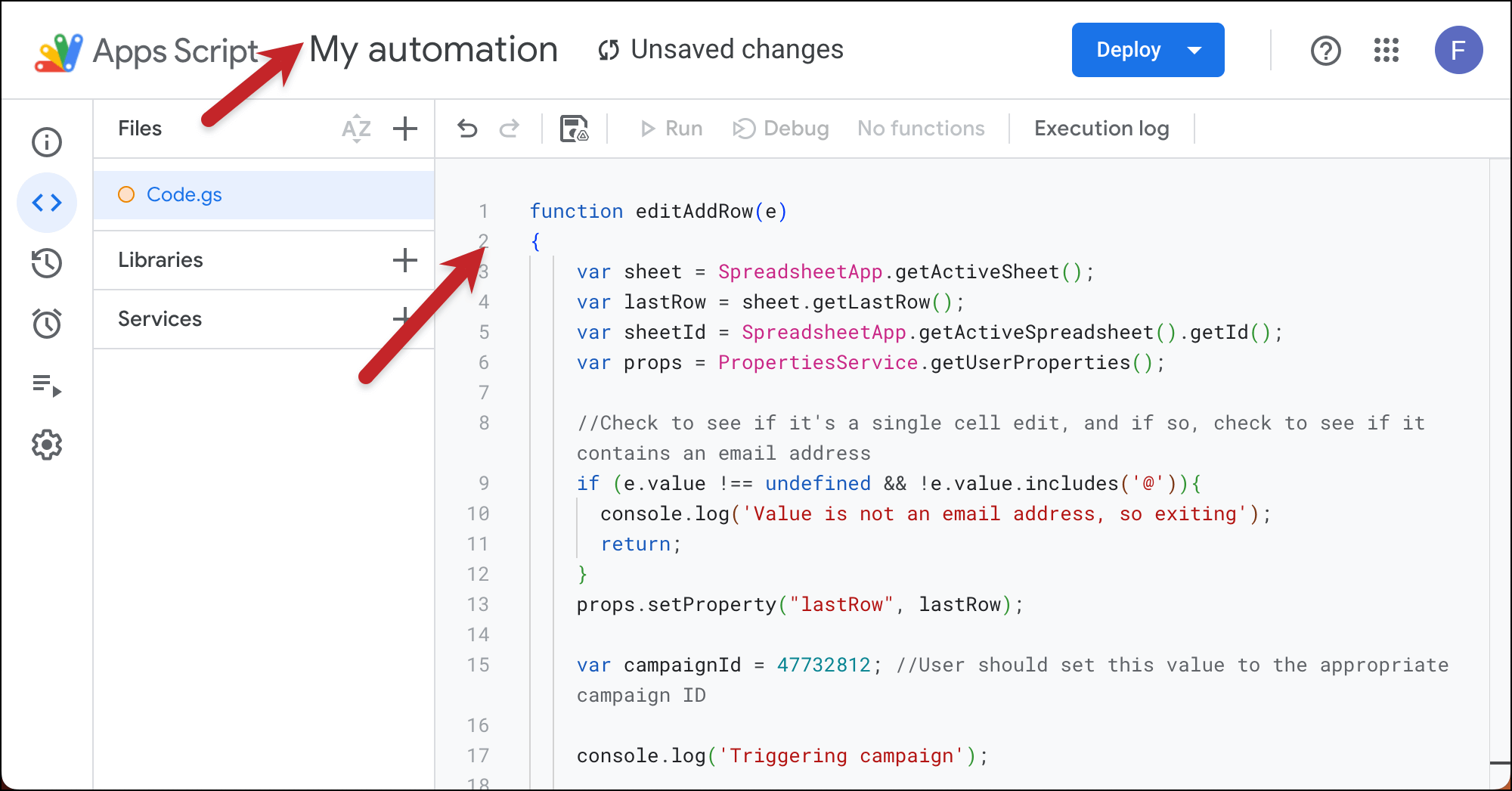 - I know it can look intimidating to set up a Google Apps Script. Check out our full guide to setting up instant recurring campaigns for even more screenshots and instructions.