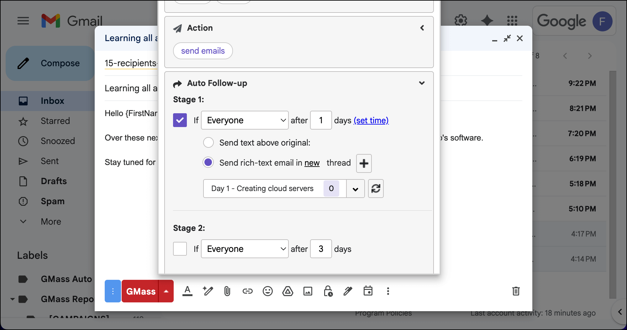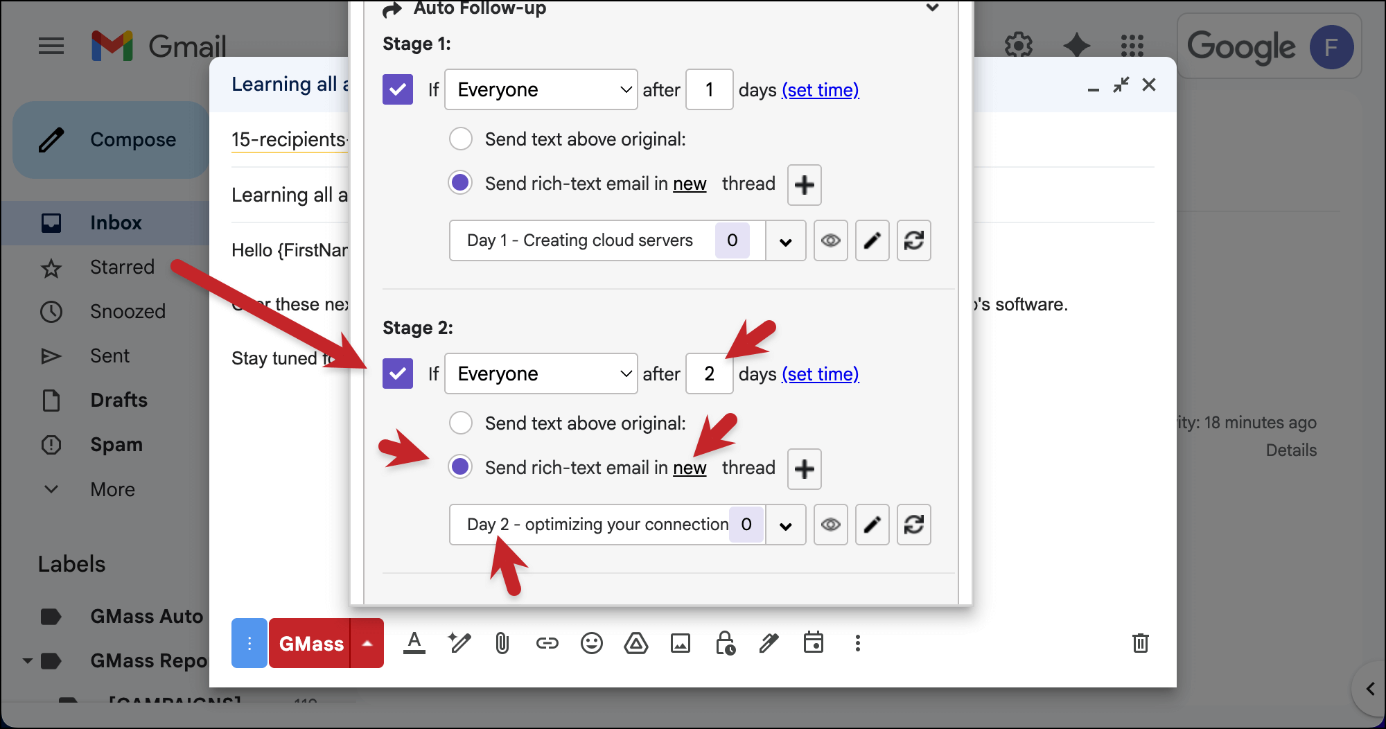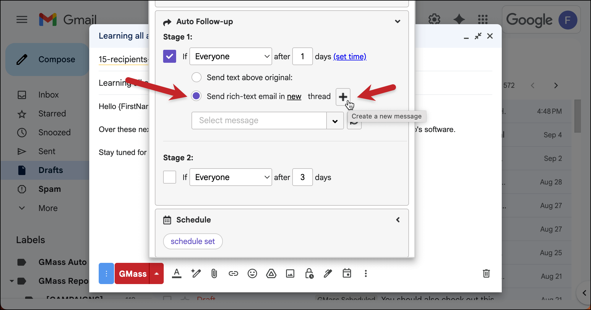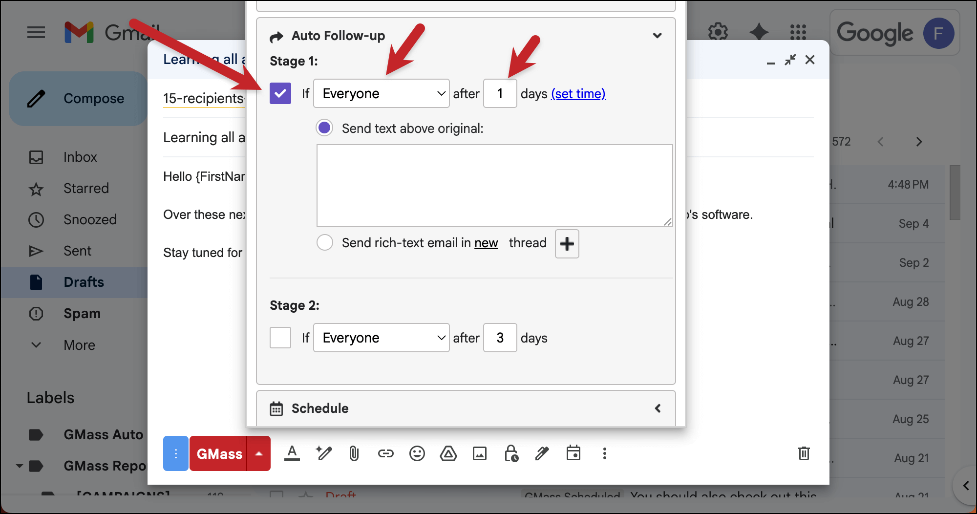 We’ll use GMass’s auto follow-ups to create our sequence.
