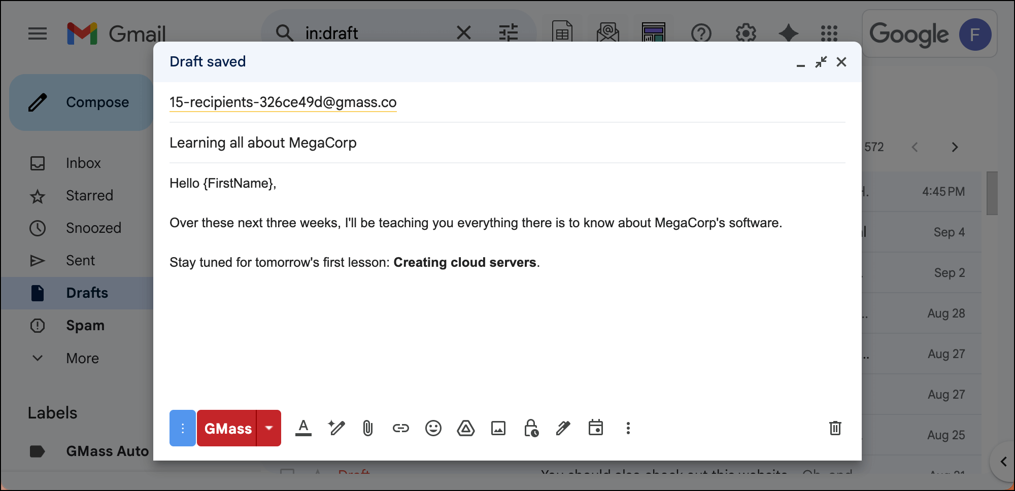 You can send any type of drip campaigns with GMass — including long ones, like educational sequences.