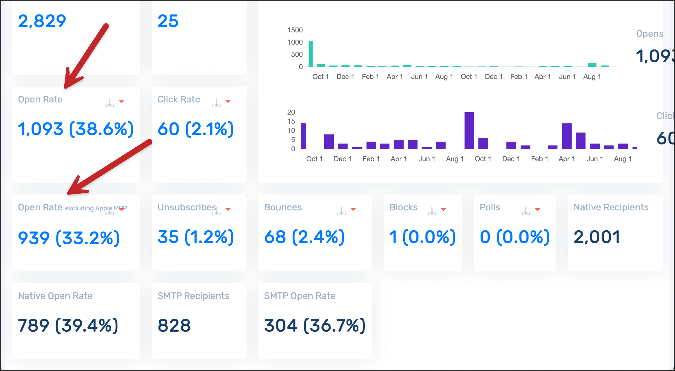 GMass is one of the few email sending platforms that actually shows you your open rate with and without Apple’s opens.