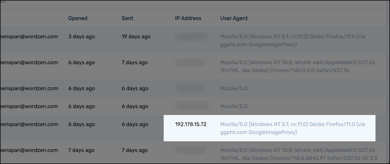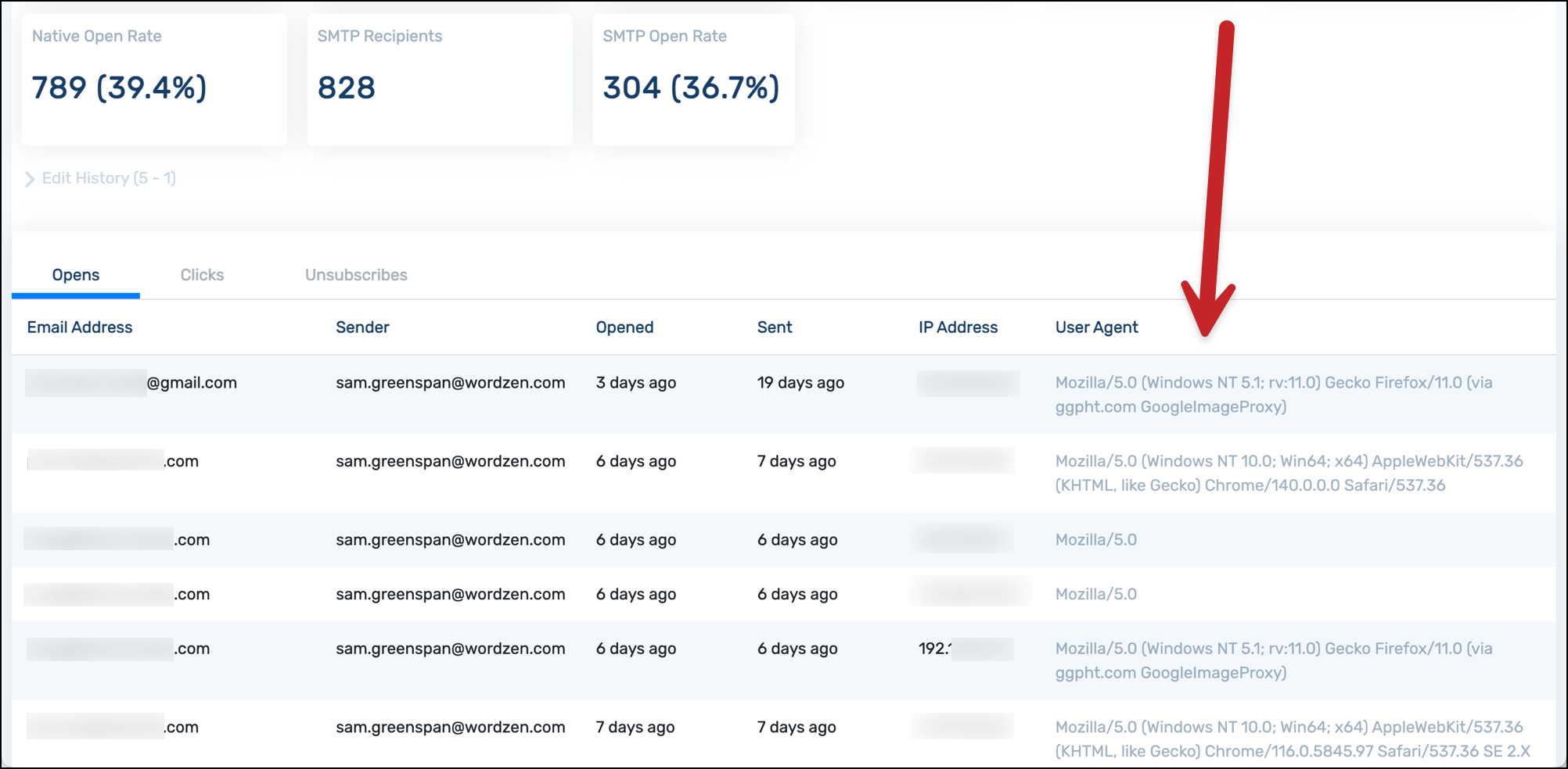 If you scroll down in your GMass report, you’ll see the list of everyone who opened your email. And that list contains the user agent for each person.