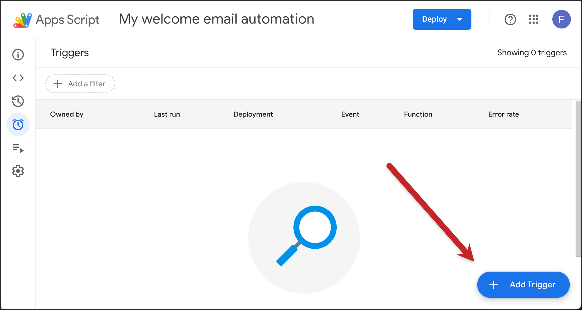 Click the + Add Trigger button.